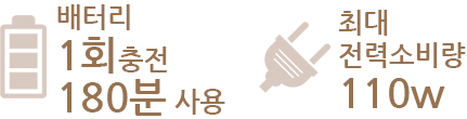 고효율 대용량 리튬이온 배터리 채택으로 한번 완전충전으로 20분간 9회 사용할 수 있고 언제 어디에서나 간편하게 휴대하고 다닐 수 있습니다. 또한 참빗은 타사 헤어드라이기의 10%의 전력소비량으로 두피를 말려주는 친환경 절전 제품입니다.
